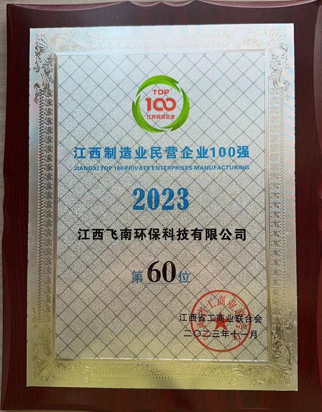 江西c7娱乐荣获2023江西制造业民营企业100强第60位