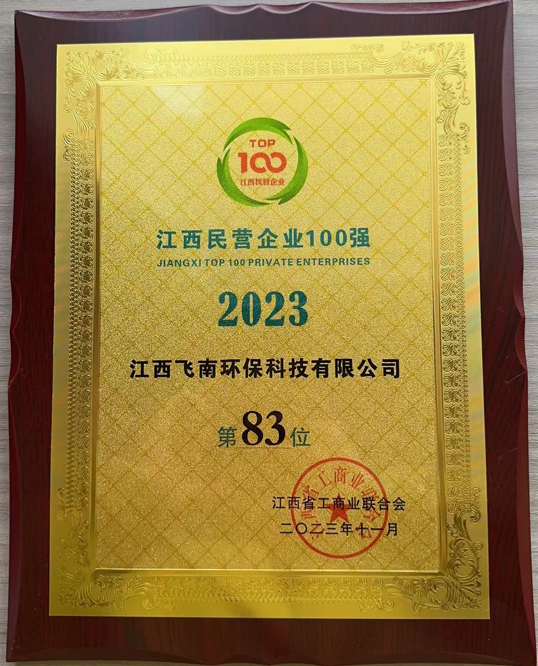 江西c7娱乐荣获2023江西民营企业100强