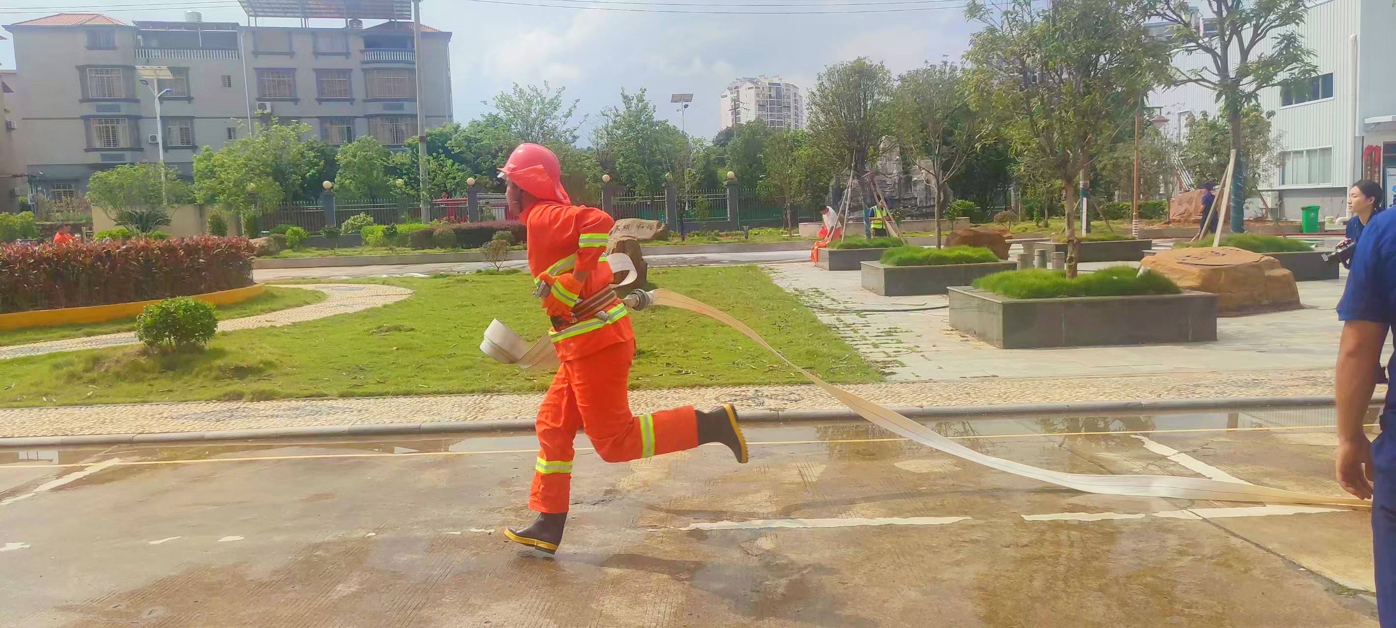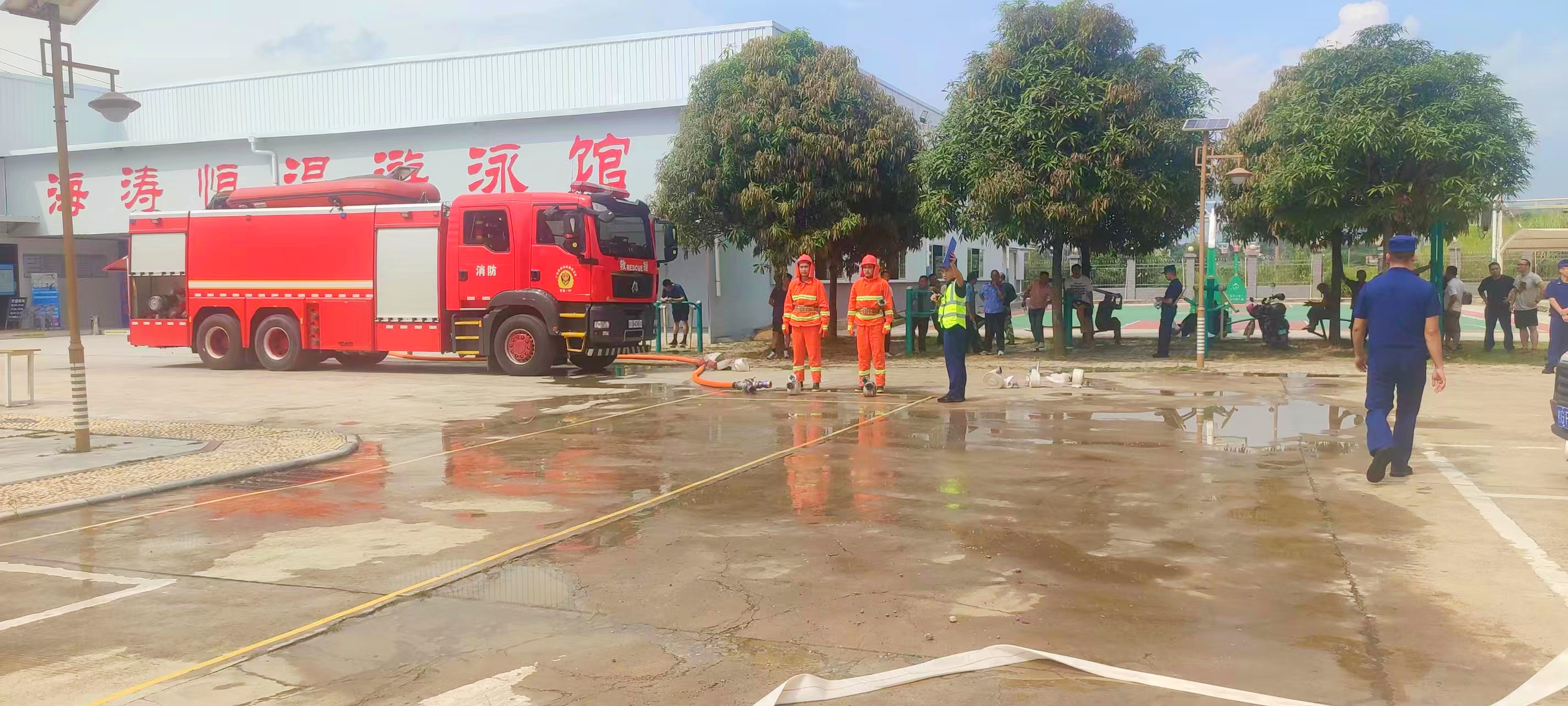 本次比武竞赛紧密结合实战需求,设置了理论考试、原地着灭火防护服、利用灭火器灭初期火灾、利用消火栓快速出水操四个高强度、高难度竞赛项目,全面检验各微型消防站的应急响应、器材操作、战术配合以及临场决策能力。